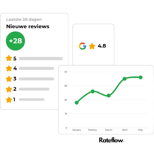 Rateflow automatiseert elke stap van het uitnodigen van klanten tot het verzamelen, beheren en delen van échte Google-reviews.